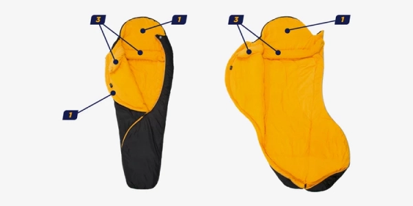 При внешней простоте кемпинговые спальники отличаются друг от друга массой деталей. Как правило, чем дороже спальный мешок для кемпинга, тем сложнее его крой, продуманнее расположение молний и вентиляция, в нём используется более приятная на ощупь ткань, а также более долговечный утеплитель, который не мигрирует и не сваливается, образуя холодные, неутеплённые области.