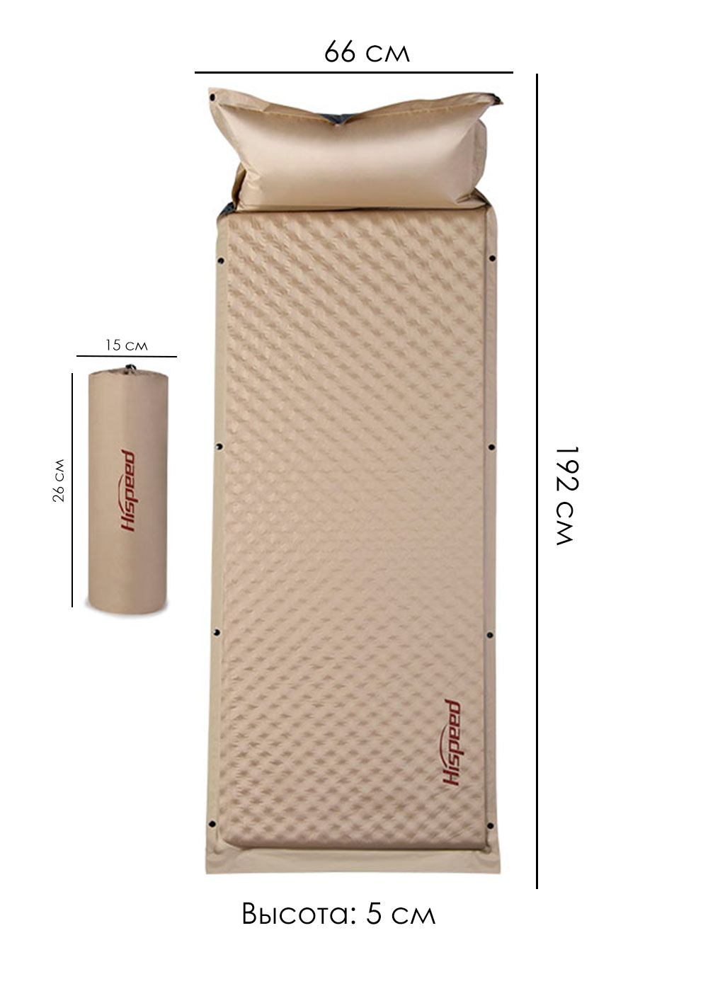 Коврик самонадувающийся Hispeed QDC-08 - отличное решение для комфортного сна во время походов и путешествий. Размеры коврика составляют 192x66x5 см, что обеспечивает достаточно места для комфортного сна. Бежевый цвет коврика универсален и подойдет для любого кемпинга. Самонадувающийся механизм позволяет быстро и легко надуть коврик, а также обеспечивает комфорт во время сна. Кроме того, коврик имеет антискользящее покрытие, которое предотвращает скольжение во время сна. Коврик Hispeed QDC-08 изготовлен из качественных материалов, которые обеспечивают долговечность и надежность изделия. Он также компактно складывается для удобства транспортировки и хранения.