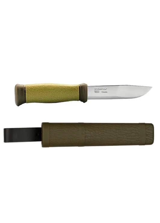 Клинок изготовлен из ножевой стали марки Sandvik 12C27, обладающей хорошей износостойкостью и повышенной прочностью. Рукоятка ножа изготовлена из грязно-зеленого прорезиненного пластика с прорезиненными и текстурированными вставками болотного цвета, позволяющими надежно удерживать нож в руке при выполнении любых работ. В комплект также входит пластиковый чехол, оснащенный кожаной петлей для крепления на ремень, что позволит комфортно и безопасно транспортировать нож.