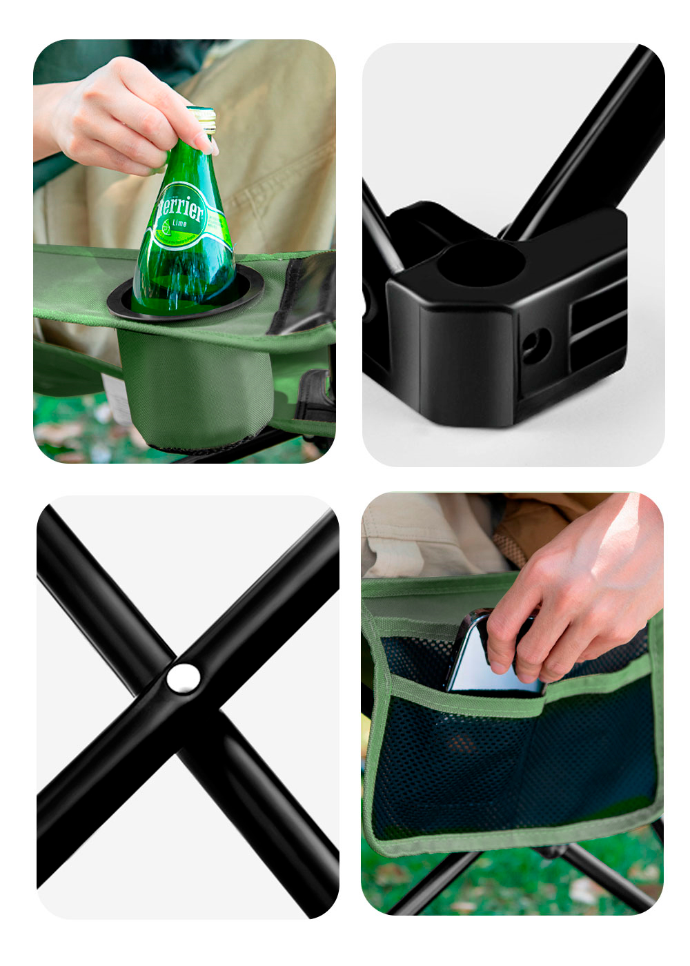 Зеленый цвет кресла делает его не только практичным, но и стильным элементом для активного отдыха. Компактные размеры позволяют легко транспортировать и хранить кресло, а прочная конструкция обеспечивает комфорт при использовании в различных условиях.
