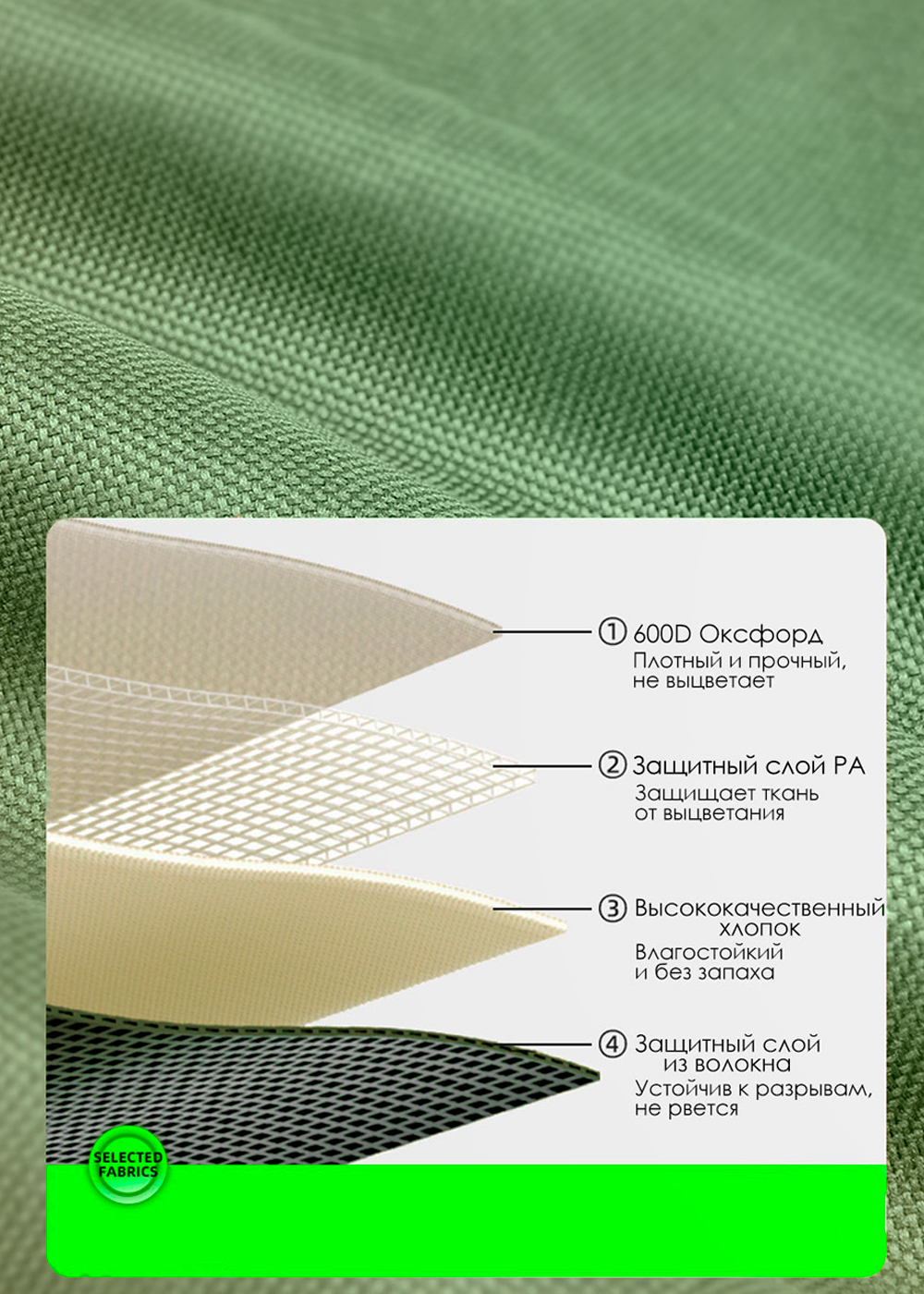 - Прочная ткань Oxford зеленого цвета