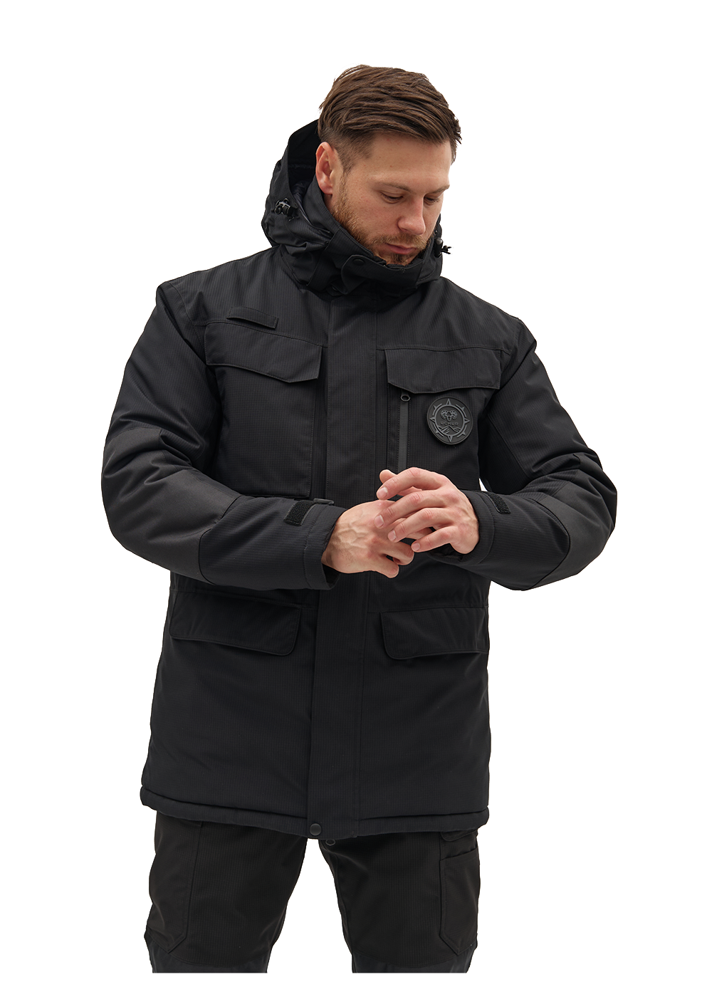 Куртка UCHUR EXPEDITION — функциональная зимняя куртка, подходящая для суровых климатических условий, которая прекрасно сохраняет тепло благодаря лёгкому и невесомому утеплителю THINSULATE 150g. Она оснащена множеством удобных карманов, что делает её практичной. Куртка изготовлена из современных материалов, которые защищают от холода, ветра и дождя, при этом оставаясь воздухопроницаемой, чтобы избежать перегрева или переохлаждения. Ткань обработана специальным составом DWR, который отталкивает влагу, а крепкие швы и усиления в местах износа обеспечивают её надёжность и долговечность.